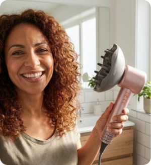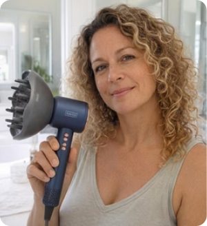 Absolutely. The XXL Diffuser is specially designed for curly and wavy hair. The magnetic click attachment stays securely in place during use, the wide bowl distributes airflow evenly, and the result is defined, voluminous curls without frizz — even for thick hair.